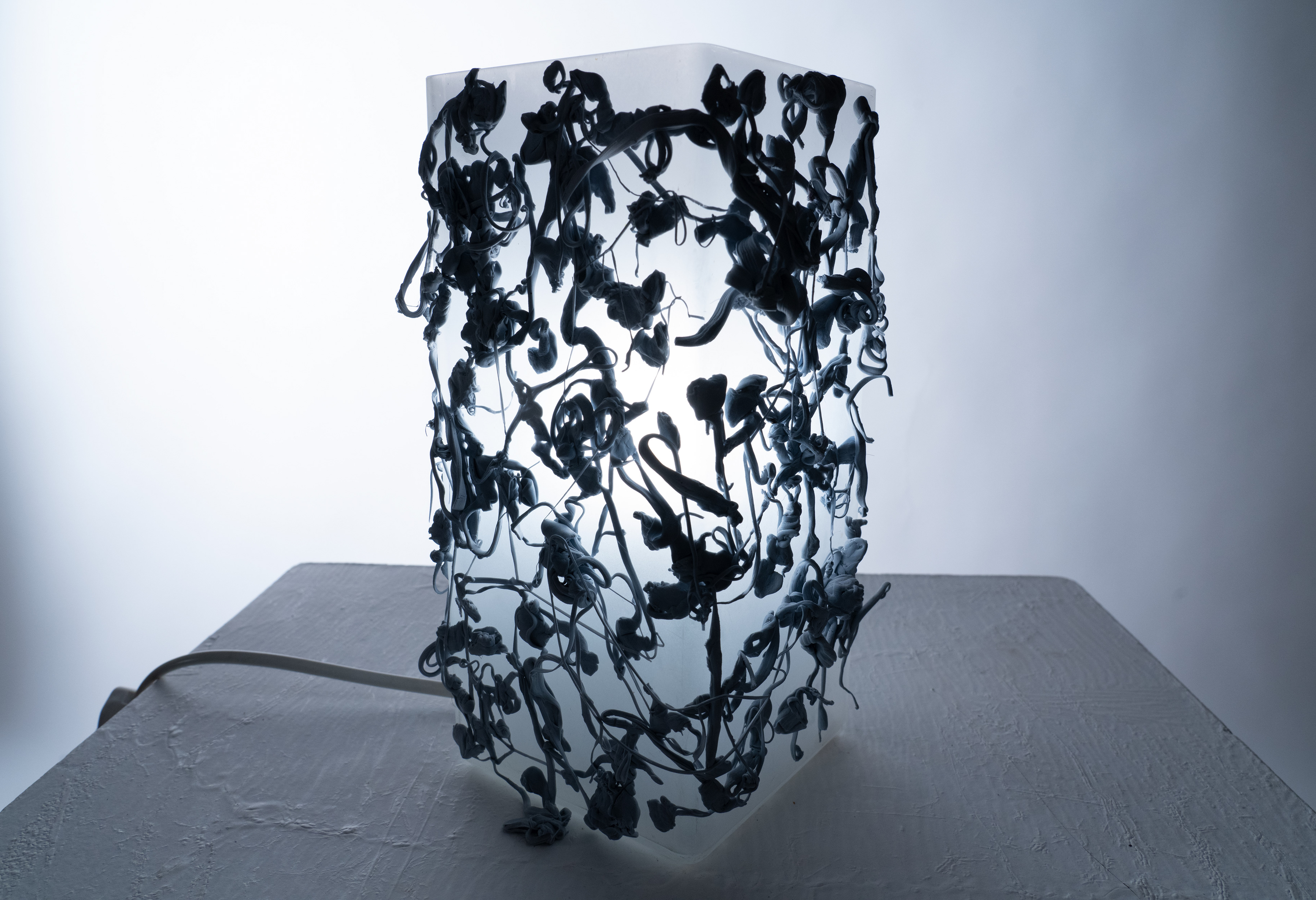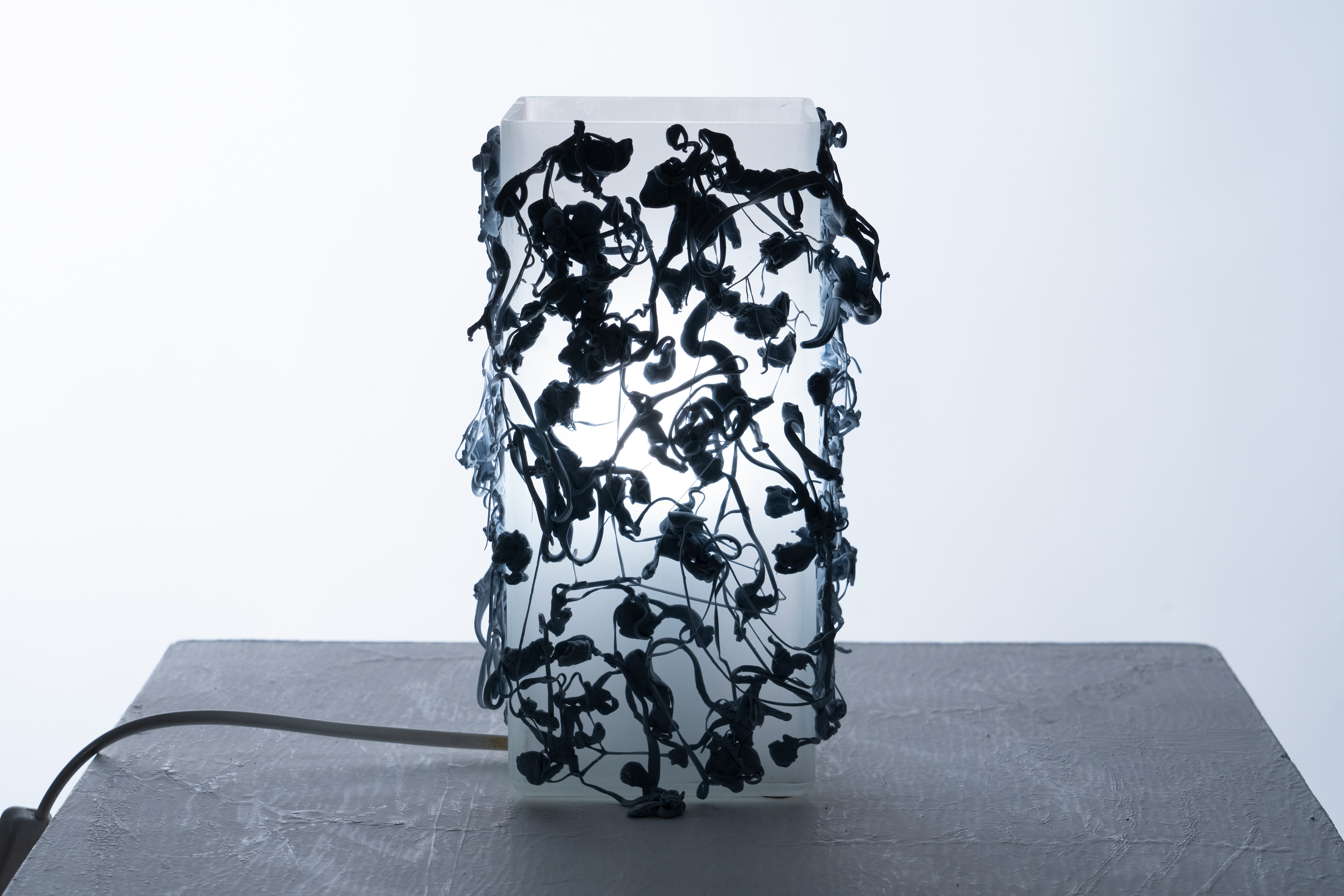 Stretched around an Ikea lamp, blutac forms unconventional shapes and casts silhouettes; reimaging commercial patterns through dynamic 3D forms.